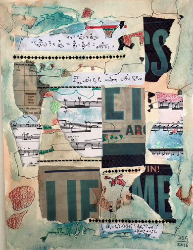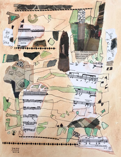 watercolor, ink and collage on paper, 11" x 8-1/2"
